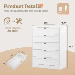 - 【Generous Storage Capacity】:Interior drawer size: 12.6″D x 28.5″W x 5.6″H; top weight limit: 250 lbs; each drawer holds up to 40 lbs. Overall dimensions: 15.7″D x 31.5″W x 41.3″H. This white chest helps organize books, blankets, jewelry, and more, keeping your room tidy.